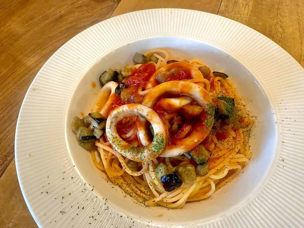 噛めば噛むほど溢れるスルメイカの旨味と、揚げ茄子の組み合わせ♪ソースをたっぷり絡めてお召し上がり下さい!!