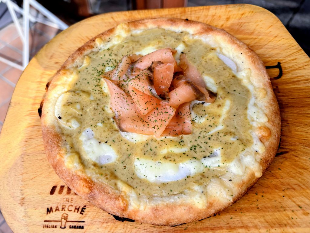 Special ランチ限定スペシャルピザ♪スモークサーモンと蟹味噌のグラタンピザ