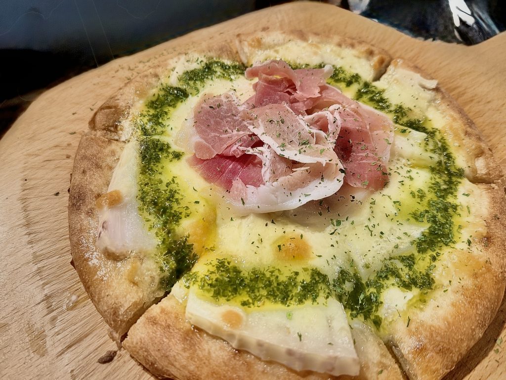 Special ランチ限定スペシャルピザ♪ジェノベーゼ香る、プロシュートと中津川産筍のピザ